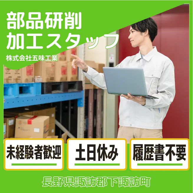 【部品製造における研削加工業務】土日祝休年3回の有休消化日あり!嬉しい日勤のみ♪正社員