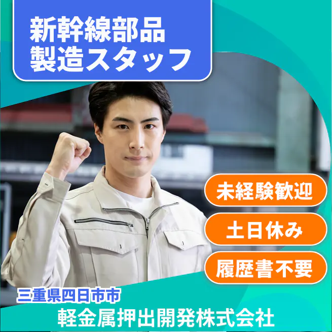当社の製造スタッフとして、新幹線に使われる形材・管材・棒材の製造をお願いします☆ 未経験の方も安心してご応募ください!フォロー体制は抜群です! 【取扱事業】 新幹線の車両部品やLNG運搬船等、大型の乗り物の一部となる製品の製造 【具体的な業務内容】 ◇押出 ◇矯正 ◇調質 ◇切断作業