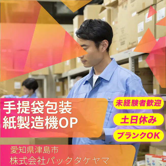 日常生活で使用する紙袋の製造を行う当社にて機械オペレーターとして就業いただきます。 スキルや経験不要!未経験の方も安心してスタートできます。 ▼取扱商材▼ ■フラワー花材(バスケット、ラッピングペーパー、リボン他) ■手提げ袋・包装紙 ■角底袋・平袋(ハイバッグ、宅配袋、イーグリップ他) ■耐油紙(食品対応袋) ■環境を考えた再生ペット・不織布素材のエコバッグ・紙器など、幅広い包装用品 ▼具体的な仕事内容▼ 製袋機のオペレーター業務 ┗手提袋・紙袋の製造 ◎手提袋または角底袋・平袋を製造する部門への配属を予定しており、配属部門は入社後研修ののち、適性をみて配属いたします。 ▼業務の流れ▼ ラジオ体操・朝礼 ↓ 当日の作業内容の確認 ↓ 手提袋・紙袋の製造 ↓ 後片付け・清掃