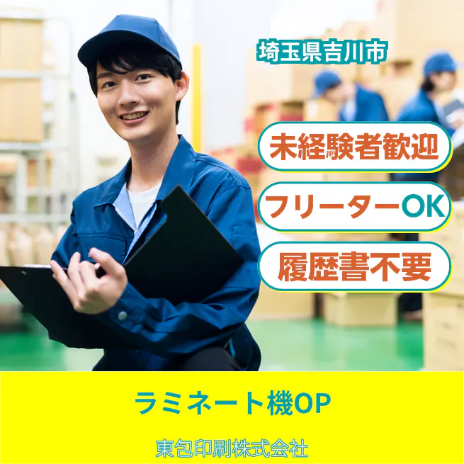フィルムを貼り合わせて大型機械でラミネートするオペレーター業務です。 未経験歓迎!イチからスタートできます! 【取扱商材】 グラビア印刷、食品のフィルムパッケージ 【具体的な仕事内容】 ・ラミネート作業 ┗印刷済みのフィルムと貼り合わせフィルムを大型機械にてラミネートしていただきます。 ・フィルムのセット ・製品の下げおろしやロールのセット ・接着剤の用意 ・機械の周りの清掃など ◇機械は2人体制で、常に現場長もサポートするため、すぐに相談できる体制です!