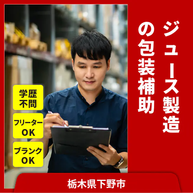 【ジュース製造の包装補助】製造が初めての方や他業種からの転職でも安心してスタートできますよ!