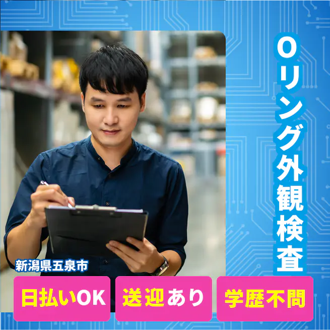 【概要】 自動車用Oリングの外観検査(拡大鏡)・包装ほか生産付帯作業。 【業務内容例】 拡大鏡での外観検査(キズ/欠け/異物) 数量確認・包装 資材補充・工程清掃 ロット管理・記録 【その他情報】 寮費無料(個室)/交通費上限3万円 通勤:車/送迎(40~60分物件あり) ATR3