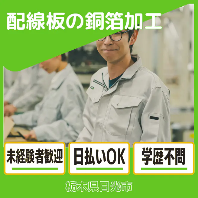 【配線板の銅箔加工】住み込みで働きたい方、長らく仕事を離れていた方、新しい業種へ挑戦したい方など幅広く歓迎します!