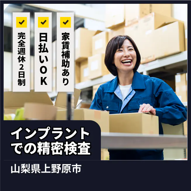 【業務内容】 医療用金属インプラントを顕微鏡検査します。 <業務例一覧> ■倍率設定し表面キズ確認 ■寸法ゲージで精度測定 ■検査結果をロット表へ記録 ■工程内抜き取り検査 ■測定具のゼロ点確認 ■クリーンベンチ周辺を清掃 《勤務条件・環境》 高精度検査・座り作業中心 ATR3