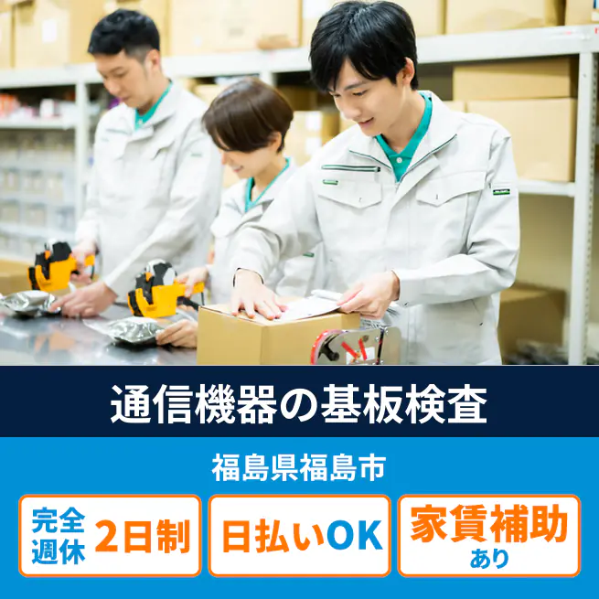 【概要】 通信機器の製造(組立・検査・梱包)。電ドラや自動機を使用。 【業務内容例】 電ドラでの組立・配線固定 基板/製品の目視検査 自動検査機の操作・判定処理 梱包・出荷準備・記録 ATR3