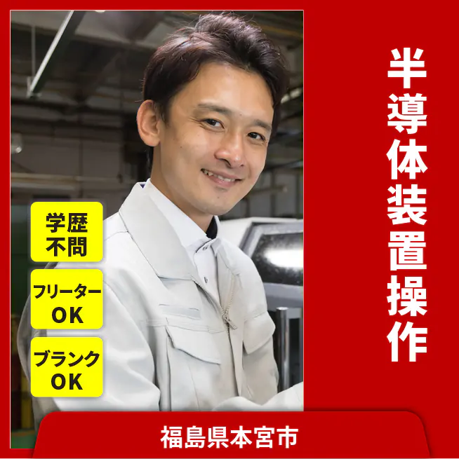 【概要】 半導体製造装置/基板実装機のオペレーター。クリーン/非クリーン両工程あり。 【業務内容例】 ウエハ/基板の装置セット 条件設定・運転監視 取り出し・外観確認 食堂・寮の生活サポートあり ATR3