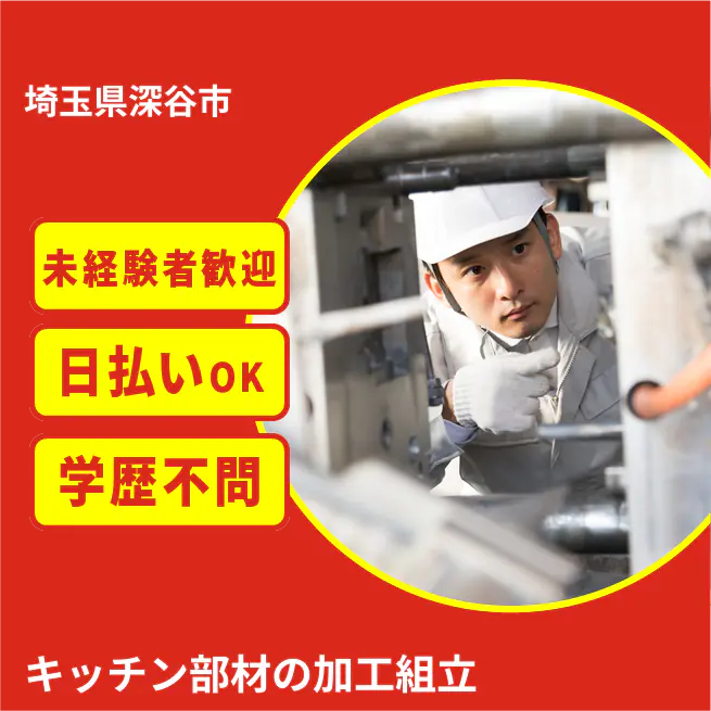 【業務内容】 システムキッチン部品の製造作業を行う仕事です。 <業務例一覧> ■製造ラインで使用する部材を準備 ■ドライバーで部品を取り付け ■タッカーを使った固定作業 ■シンク部分に木材を貼り付け ■表面を研磨して仕上げる ■完成部品を組立工程へ供給 ATR3