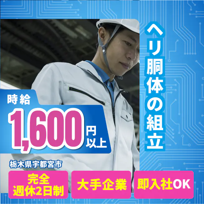 ヘリ胴体の組立残業多めで稼ぐ!嬉しい高収入♪