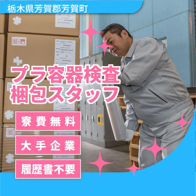 【プラ容器検査梱包スタッフ】【寮費ゼロで新生活☆】軽い容器のチェック&梱包♪未経験OK×空調完備!オンライン登録!