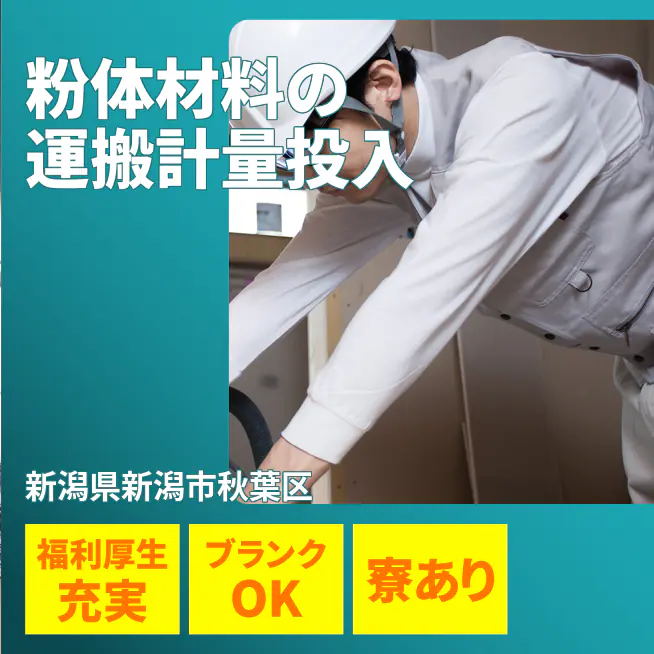 【粉体材料の運搬計量投入】【粉末材料オペ】無期雇用派遣★資格取得でスキルUP!/オンライン登録