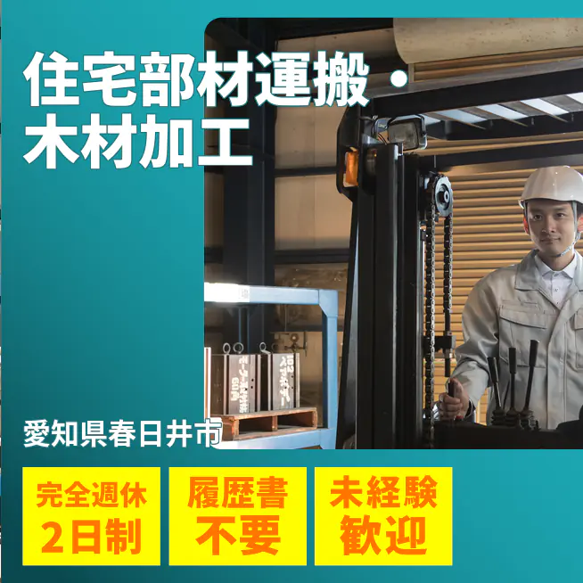 【業務内容】 住宅部材の運搬・木材の加工業務をお任せします。 <業務例一覧> ■運搬作業 ■木材の加工 ■機械操作 ■木材カット ■作業後の整理整頓 【募集背景】 既存業務拡大に伴う増員募集 ATR5