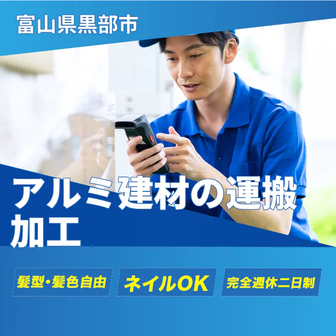 【アルミ建材の運搬加工】【アルミ建材の加工・検査】土日祝休み★ヘアカラーOKで楽しく!/履歴書不要