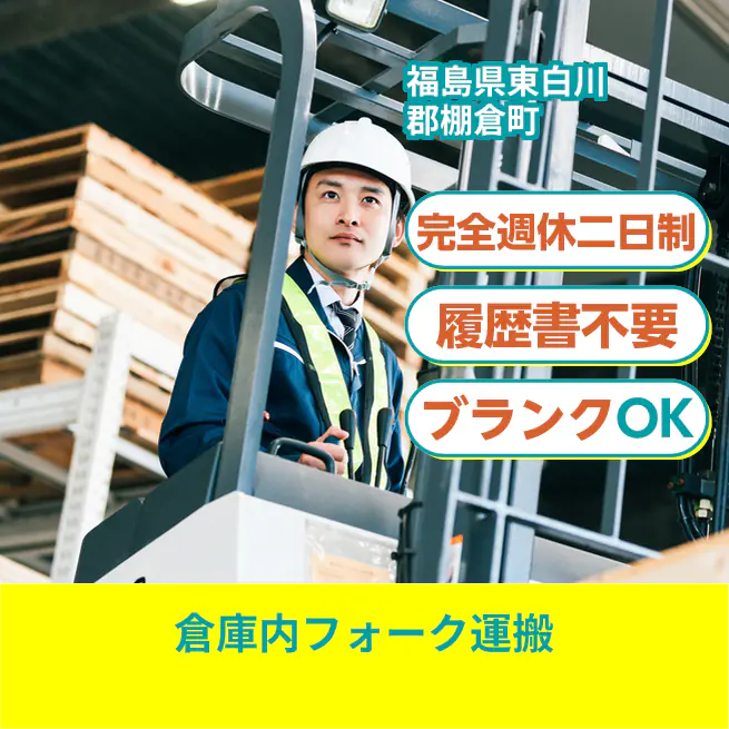 週休2日で安心【倉庫内フォーク運搬】