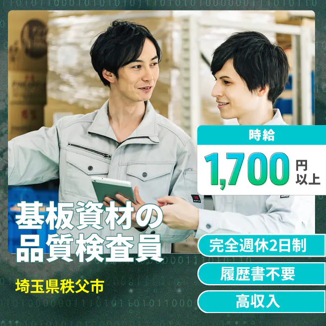 【基板資材の品質検査員】経験を活かせる★土日祝休み×高収入でプライベートも充実/履歴書不要