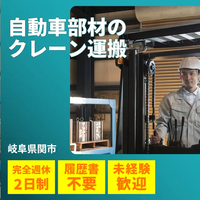 【概要】 自動車部品の材料をプレス部門でクレーン搬送し、付随作業も行います。 【業務内容例】 材料のクレーン運搬 段取り・置場整頓 簡易検品・ラベル確認 安全点検・記録 【その他情報】 募集背景:増員 ATR5