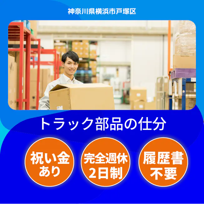 トラック部品の仕分【3ヶ月毎に精皆勤手当最大7.2万円!】未経験OK!月収30万円以上可!土日休み!