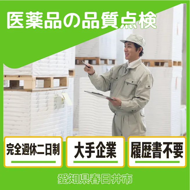 医薬品の品質点検週末休み☆プライベート充実!