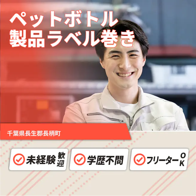 【ペットボトル製品ラベル巻き】 【業務内容】 ペットボトル飲料のラベル巻きマシンを操作します。 <業務例一覧> ■ボタンでラベラー起動 ■フィルムロール交換 ■箱詰め装置の監視 ■製品外観をライト検査 ■資材残量を記録 ■ライン終業後に清掃 《勤務条件・環境》 車通勤可・週払いOK ATR3