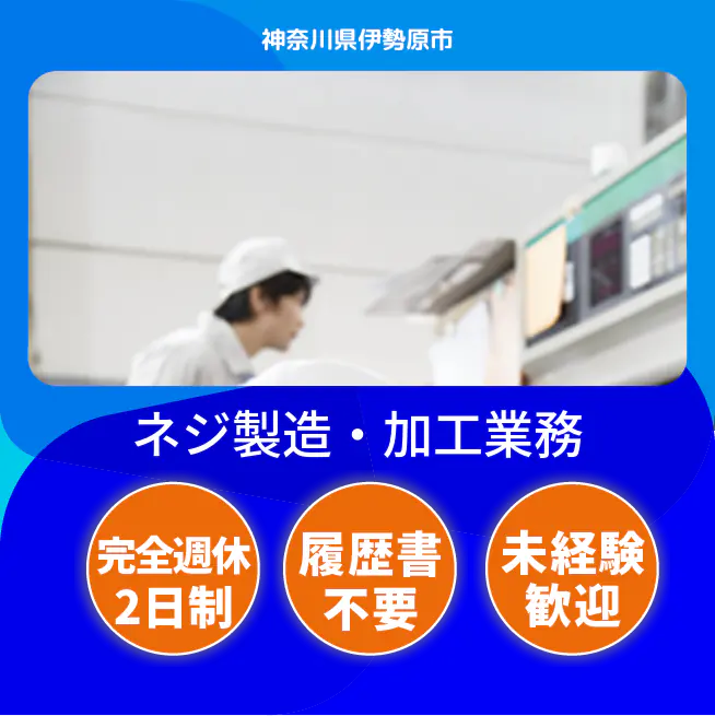 安心の週休制度【ネジ製造・加工業務】【未経験からプロフェッショナルへ☆】しっかり稼げる製造ワーク!ちょっぴりの残業で収入アップ♪