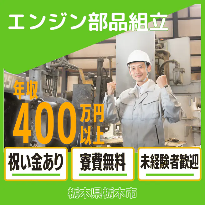 【エンジン部品組立】【生活基盤も職場も安定】寮あり/車通勤◎/週払いOK/手厚い支援