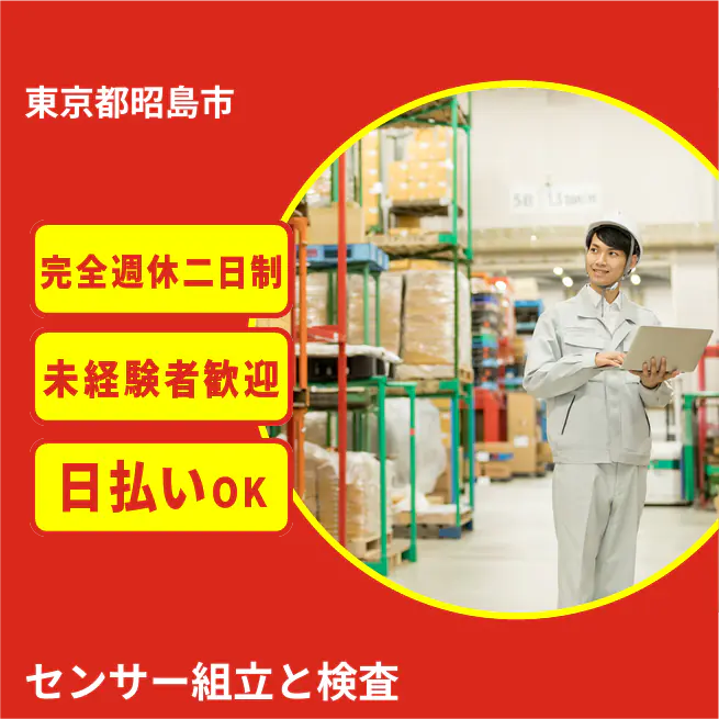 車・バイク・自転車通勤OK転勤なし【勤務地】東京都昭島市武蔵野3丁目