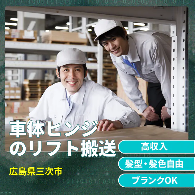 車体ヒンジのリフト搬送未経験大歓迎♪ 残業ほぼナシでプラ充☆ 20代多数! 髪型自由◎