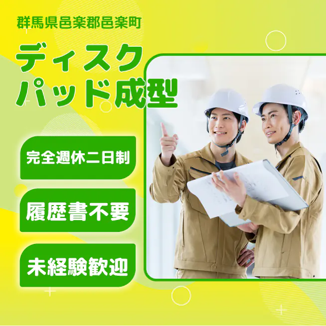 週2日しっかり休める【ディスクパッド成型】【安心の未経験歓迎】プライベートも充実!効率よく稼げるお仕事♪