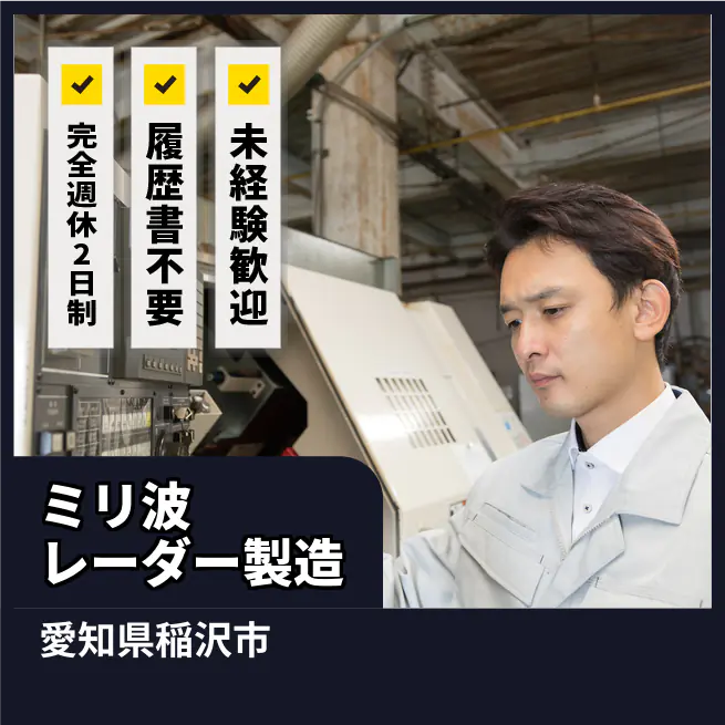 しっかり休める【ミリ波レーダー製造】【未経験歓迎!】しっかり稼げる高収入ワーク☆未来を切り開くチャンス!20代がイキイキ活躍中♪
