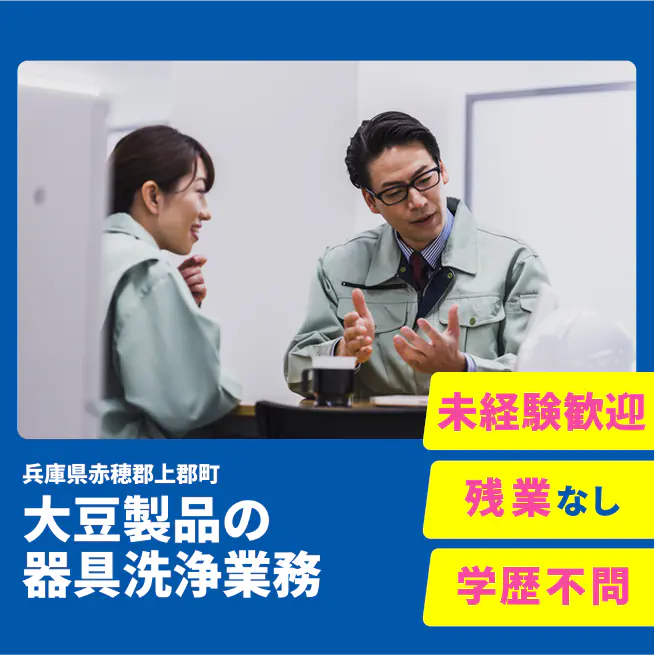 【大豆製品の器具洗浄業務】地元で活躍したいあなたにピッタリ♪ 初心者歓迎★ 残業ゼロでプライベートも充実!