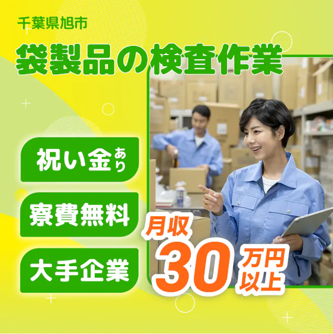 【業務内容】 食品包装材の最終工程での検品と梱包作業 <業務例一覧> - 機械から出てくる袋状の製品を整え、100枚程度にまとめる - まとめた製品の上部両端の切込みの位置を確認する - 切込み位置に問題がなければ、製品を出荷用の段ボールに詰める - 検品作業で不良品が見つかった場合、適切に処理する - 作業場の清掃や片付けを行い、作業環境を整える ATR3