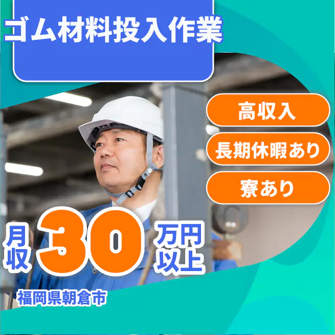 しっかり稼げる【ゴム材料投入作業】新生活を応援♪プライベートも充実の年間120日以上の休日!リラックスした環境で自分らしく働こう!
