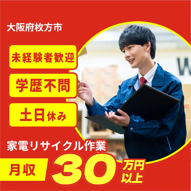 【家電リサイクル作業】週末はゆっくりリフレッシュ♪ 寮完備で新生活も安心!年間120日以上の休日で未経験から始めるリサイクルのお仕事、長期休暇も充実!