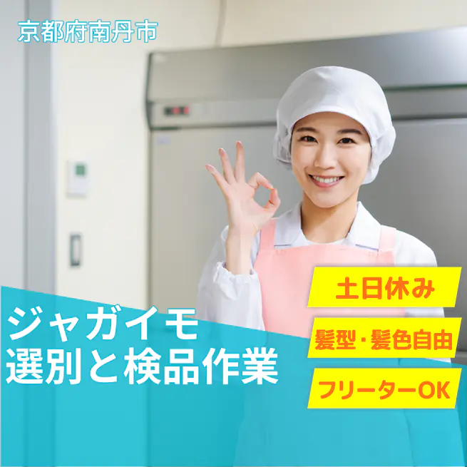 【業務内容】 ジャガイモの加工と製品検品作業 <業務例一覧> - ジャガイモを品質によって選別する作業 - ジャガイモを切る作業 - 生産ラインの切替に伴う清掃作業 - 出来上がった製品の検品 - 割れたジャガイモを取り除く作業 - 包装後の袋の検品 ATR3