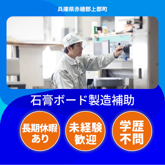 【業務内容】 石膏ボードの製造に関わる機械操作と品質検査、運搬作業を行います。 <業務例一覧> - 石膏ボードの材料を混ぜ合わせる機械の操作を習得する - 完成した石膏ボードをペアで品質検査する - 規定の枚数に石膏ボードを積み上げる - フォークリフトを使用して積み上げた石膏ボードを指定の場所に運搬する - 機械のメンテナンスや簡単なトラブルシューティングを行う ATR3