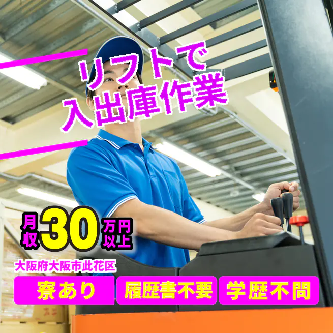 安心の昼勤務【リフトで入出庫作業】新しいスタートを応援します♪ 寮完備で安心!
