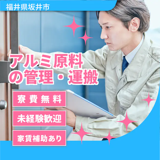 【業務内容】 アルミ原料の荷下し、成分管理、溶解を行う業務 <業務例一覧> - チームで協力してアルミ原料をフォークリフトでトラックから荷下し - 種類ごとにアルミ原料を分けて整理 - アルミ缶用や自動車用に応じて、配合量を管理し原料を運搬 - 台車に原料をセットする作業 - フォークリフトを使って原料を運び、溶解炉に挿入 - 溶解炉のボタン操作によるアルミの溶解 ATR3
