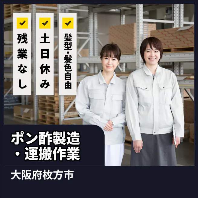 【ポン酢製造・運搬作業】週末はゆっくり休めます♪ 長期休暇もあり!残業ゼロでプライベート充実★