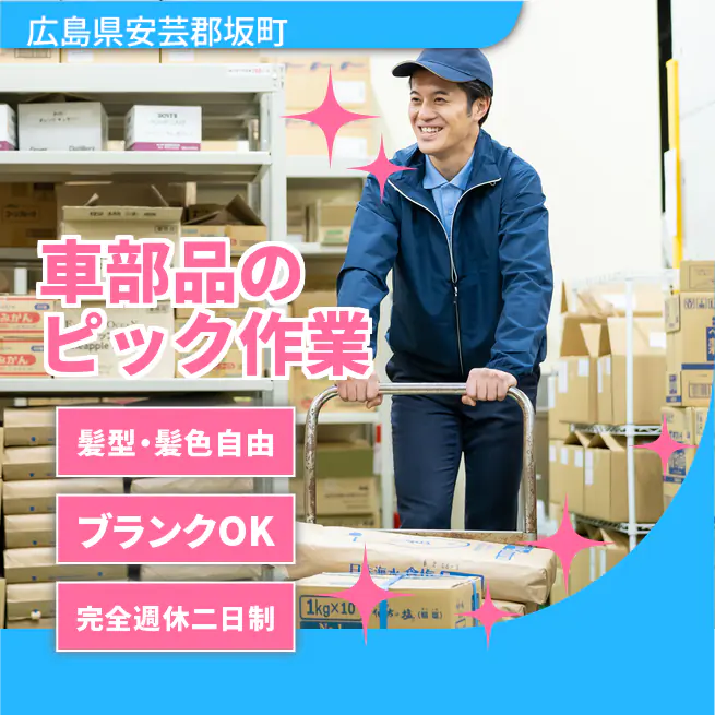 週休2日で安心【車部品のピック作業】新しい仲間を大募集!日中の時間を有効活用しながら、楽しく働こう♪未経験も大歓迎のアクティブワークです!