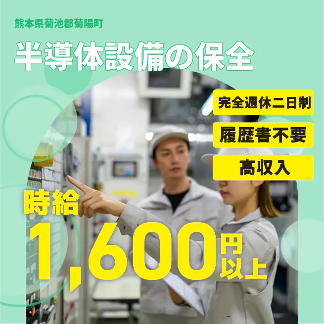 半導体設備の保全残業多めで稼ぐ!嬉しい高収入♪