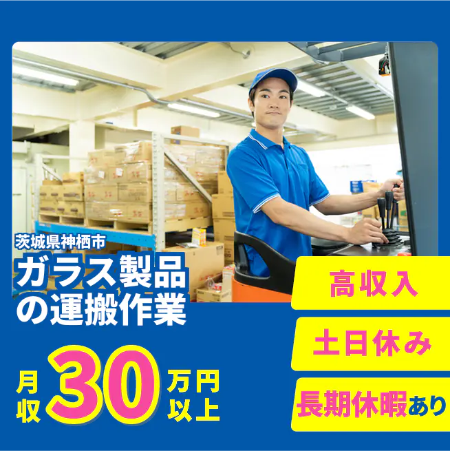 【ガラス製品の運搬作業】週末を満喫♪ 年間休日120日以上でリフレッシュ!長期休暇もたっぷり!