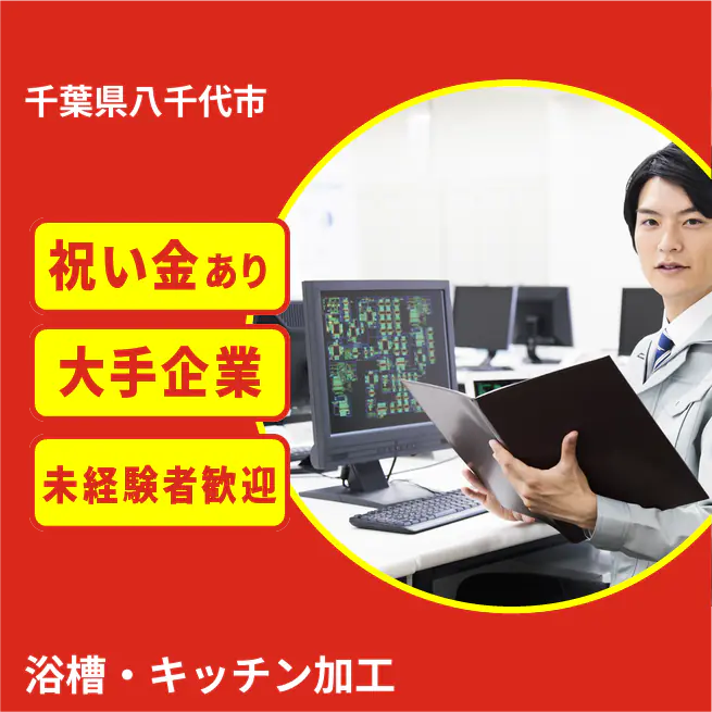 【業務内容】浴槽やシステムキッチン天板の成形加工を行う仕事 <業務例一覧> - 機械にセットされた金属の型に液状の原料を注入する - 製品の形を作るために機械を操作して熱を加える - 完成した製品を取り出し、台車に載せる - 使用した金型を清掃して次の作業に備える - 次回の作業のために原料を補充して準備する ATR3