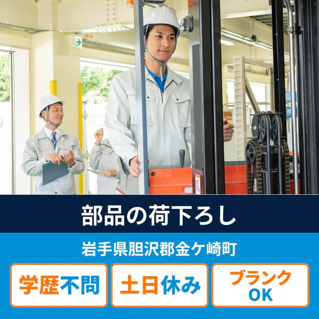 【概要】 自動車工場の物流センターでカウンターフォーク中心の荷役・供給業務です(見学可)。 【業務内容例】 トラックからの荷積み・荷下ろし フォークリフトでの搬入・格納(ほとんどがフォーク) ユニエレカでラインへ部品供給 ロケーション管理・安全ルール順守 日常点検・記録 【その他情報】 駅から車約9分/外気影響あり/食堂なし・休憩所・更衣室・ロッカー有/作業着貸与/駐車場無料/構内禁煙 男女比:男性多め ATR3