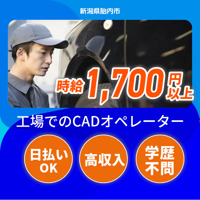 【工場でのCADオペレーター】月収例26万円以上/日勤/1年以上経験必須/土日祝休み/高時給1700円