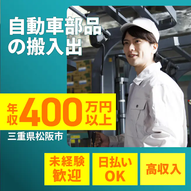 【業務概要】 【自動車部品のフォークリフト運搬】車体パーツや銅板の運搬・入出庫・出荷積込、簡単なPC入力を行います。カウンター・リーチ両方を使用します。 【具体的な作業】ドア・ボンネット・フレーム等の運搬/保管場所への搬入出/出荷時の積込/簡単な入出庫データの入力 【職場環境】伊勢八太駅から車5分・伊勢中川駅から車8分/20~50代活躍中/家電付きワンルーム寮(敷礼金0・Wi-Fi規定あり/家賃実費5.0~5.5万円) \アピールポイント/ ・フォークリフト経験を存分に活かせる ・家電付き寮で新生活も安心 ・幅広い年代が在籍する安定職場 ATR3