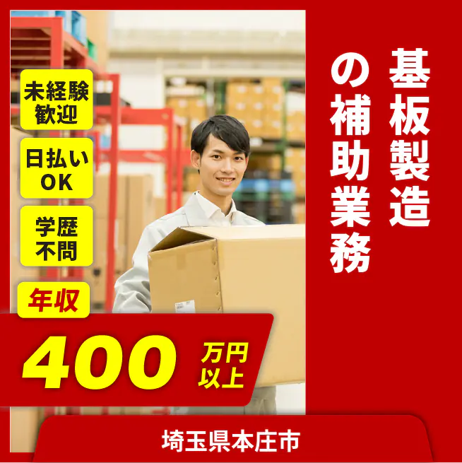 安心スタート【基板製造の補助業務】「未経験からスタート!安定収入で未来をつかもう♪ 充実のサポートと休暇制度でプライベートも安心◎」