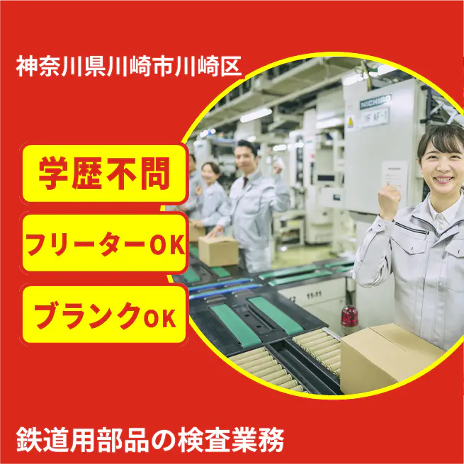 【業務内容】 電気鉄道車両用モータ駆動システムユニットの製造と半導体の検査を行う仕事です。 <業務例一覧> - 新幹線や在来線用の電気鉄道車両のモータ駆動ユニットの組み立てを行う - 半導体部品の電圧検査を実施する - ブロッキングテストを用いて部品の耐久性を評価する - 引っ張り試験による部品の強度確認を行う - プレス検査を通じて部品の耐久性を確認する ATR3