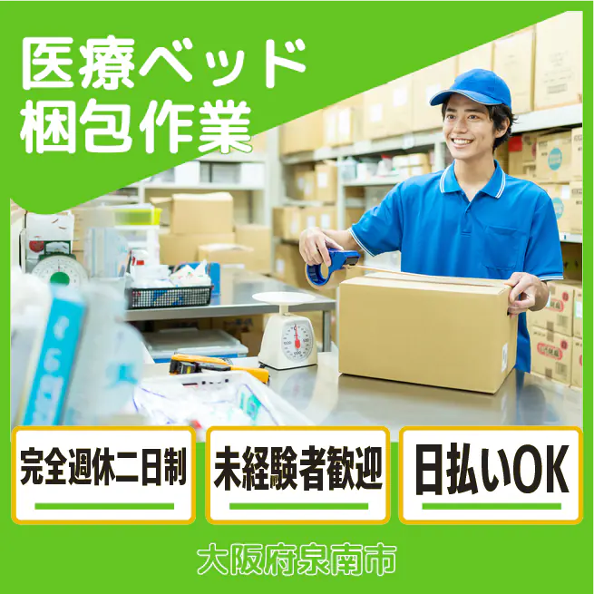 医療ベッド梱包作業充実のオフタイム!17時退社でプライベートも大切に★家具・家電付き寮完備で新生活も安心♪工場未経験でも元気な挨拶からスタート!