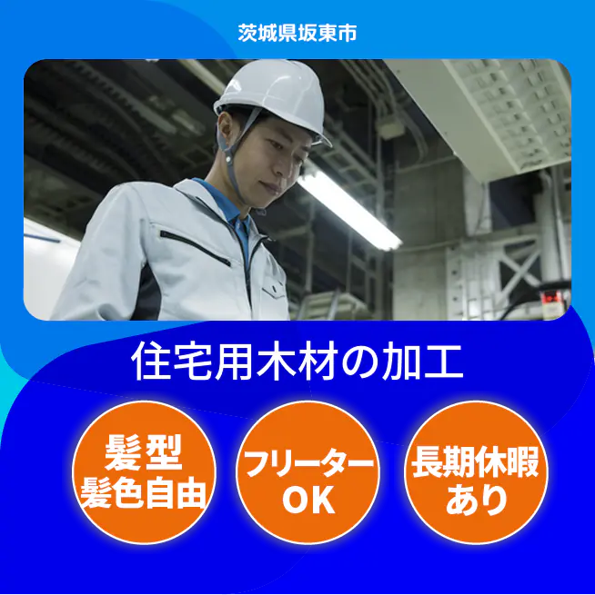 • 【業務内容】 住宅用木材の加工を担当するオペレーター業務です。 <業務例一覧> - 木材加工用の機械を操作して、住宅用の木材を正確なサイズにカットする - カットした木材を指定の場所に積み上げて整理整頓する - 加工後の木材を運搬するために準備し、安全に移動させる - 機械の点検や簡単なメンテナンスを行い、常に良好な状態を保つ - 作業エリアの清掃や整理を行い、作業環境を整える ATR3