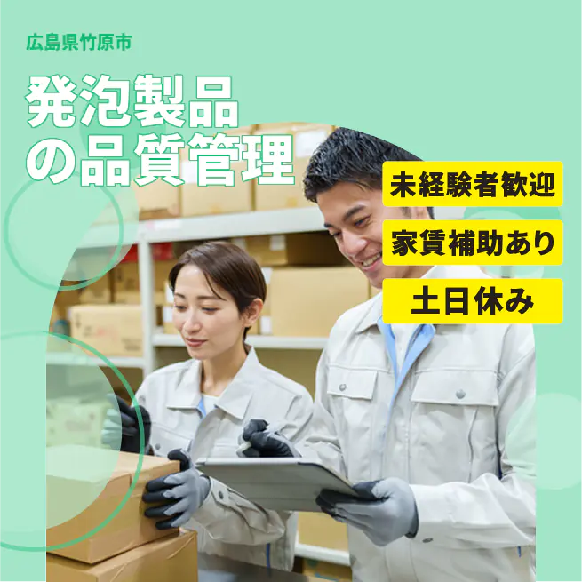 安心スタート【発泡製品の品質管理】正社員デビューを応援♪ 社宅完備&車通勤OK★安定の東証プライム上場グループで新しいキャリアをスタート!