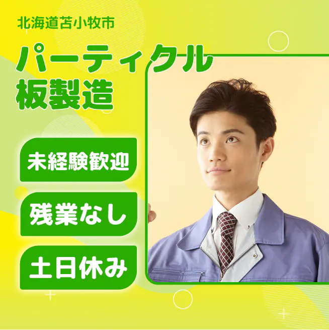 安心の昼勤務【パーティクル板製造】「新しいスタートを応援!車で快適通勤♪安定企業で安心のキャリアを築こう」